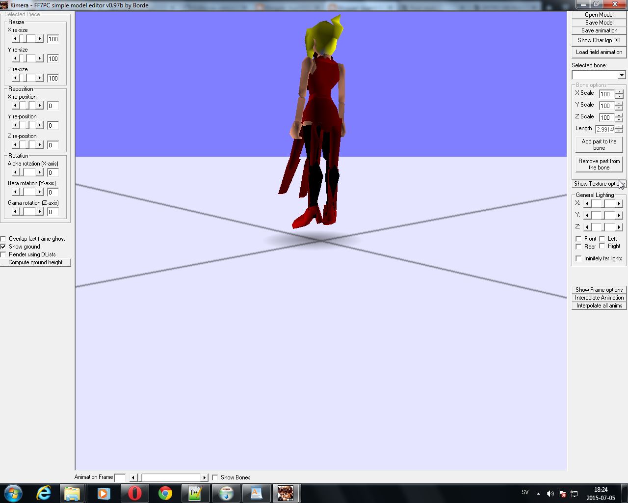 The fifth and final version f Scarlet in the field. I did remake her ass-part to make it look alot better. And this time i did make the model FOLLOW the skeleton (green lines). It is complete now, but i am still to finish her other models. Almost done with the battle model, and i am done with dress-Scarlet. After the battle model is finished i need to replace five year old Aerith and ten year old Aerith with Scarlet. And then ultimately create the Scarlet Avatar!