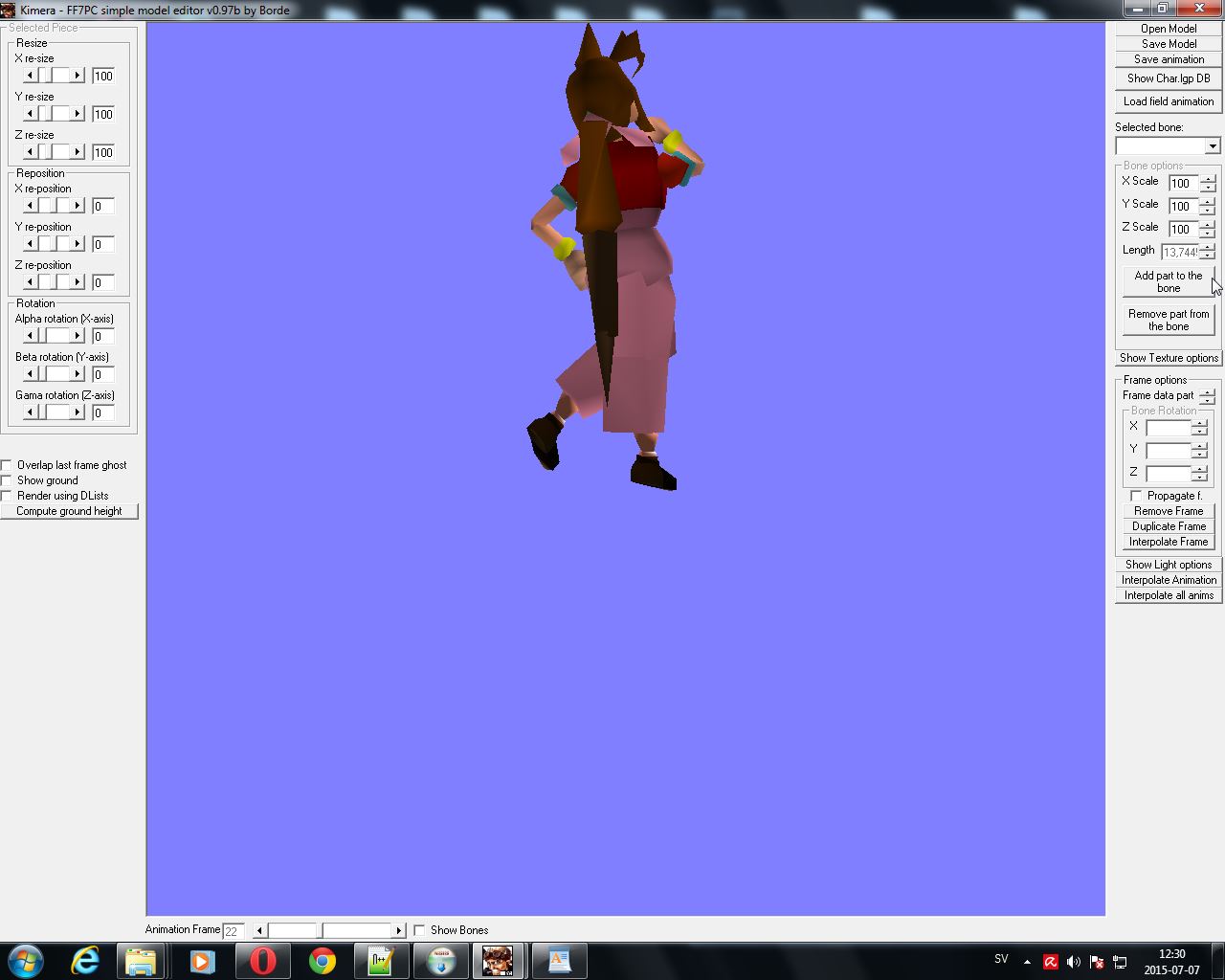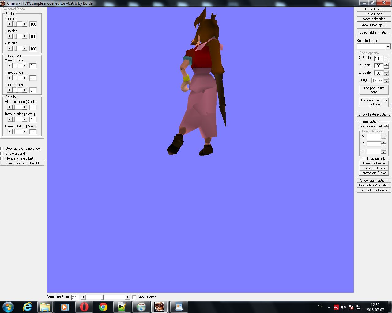 Aerith converted into Scarlet of the Shinra second version (made 2015 the bygone week, had the wrong placements of bodyparts and didn't work as intended because of the bodyparts not FOLLOWING the skeleton, the green lines, i had to rework it).